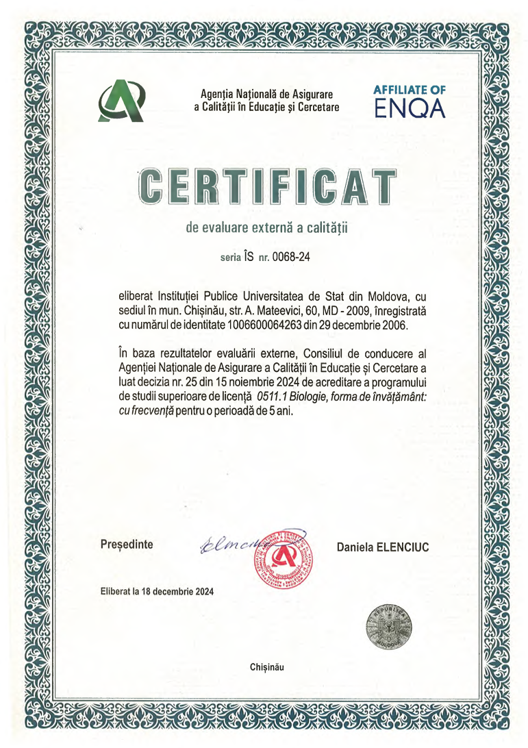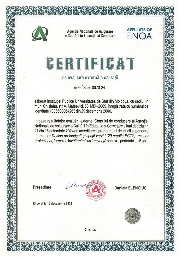 CERTIFICATE DE EVALUARE EXTERNĂ A CALITĂȚII
